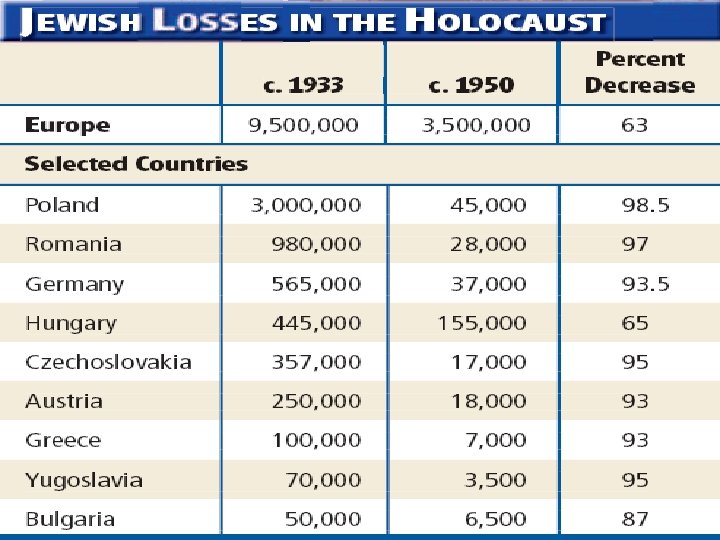 � 2 nd Solution – Relocation �Jews were forcibly relocated to “ghettos” as slave labor �Disease, suicide, starvation were common � 3 rd Solution – Holocaust or Final Solution �Hitler’s plan to exterminate the Jews = Genocide � 6 million Jews were killed � 5 million “others” were killed