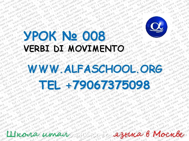 WWW. ALFASCHOOL. ORG TEL +7 906 737 5098 ARRIVEDERCI ALLA PROSSIMA LEZIONE WWW. ALFASCHOOL. ORG TEL +7 906 737 5098 Школа итальянского языка в Москве
