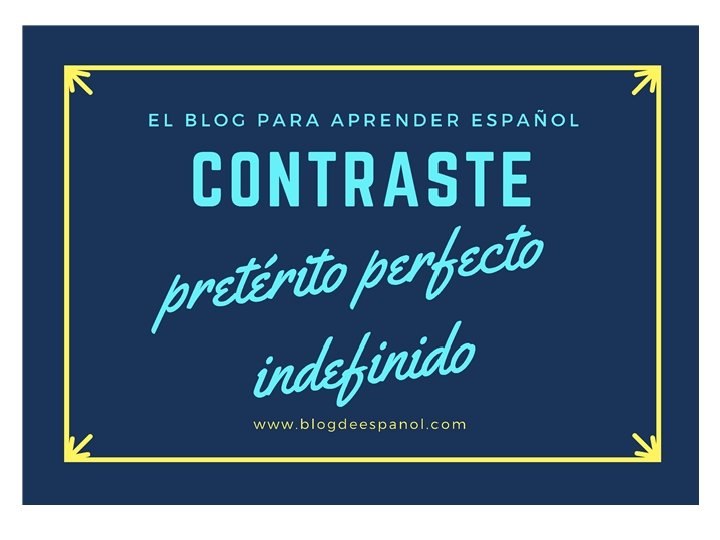 www. blogdeespanol. com PRETÉRITO PERFECTO HE HAS HA HEMOS HABÉIS HAN Hacer: hecho Poner: puesto Romper: roto Ver: visto Volver: vuelto -AR > -ADO -ER/-IR > -IDO Abrir: abierto Decir: dicho Morir: muerto Cubrir: cubierto Escribir: escrito PRETÉRITO INDEFINIDO -AR Hablé Hablaste Habló Hablamos Hablasteis Hablaron -ER / -IR Viví Viviste Vivió Vivimos Vivisteis Vivieron Estar: estuve Tener: tuve Hacer: hice Venir: vine Querer: quise IRREGULARES -e -iste -o -imos -isteis -ieron Poner: puse Poder: pude Saber: supe Conducir: conduje Traer: traje IR/SER: fui, fuiste, fue…