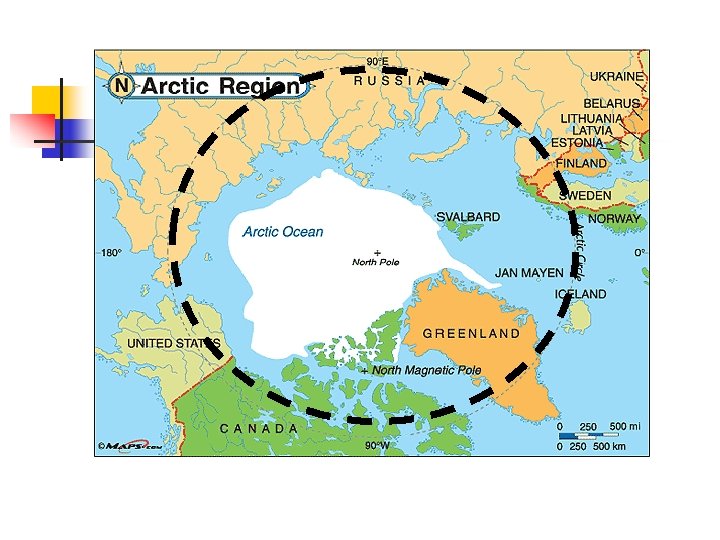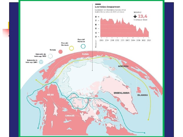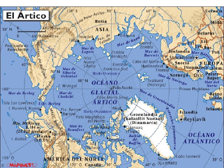 ARTICO n n n n Territorios que superan el Círculo Polar Artico EE. UU Alaska Dinamarca: Groenlandia Canadá Noruega : T. archip. Rusia Suecia No tienen frente marítimo Finlandia Islandia