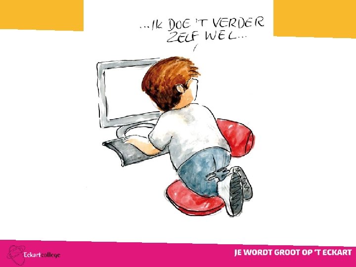 ØLaagdrempelig aanspreekpunt Lange en korte termijn doelen stellen Leren leren (planning, leerstijlen etc. ) Zelfvertrouwen Eigen en andermans beperkingen leren aanvaarden Motivatie Positieve feedback Aanmoedigingen, maar geen extra druk leveren School van een negatieve ervaring in positieve ervaring veranderen Talent + Inzet + Strategie = Resultaat § § § §