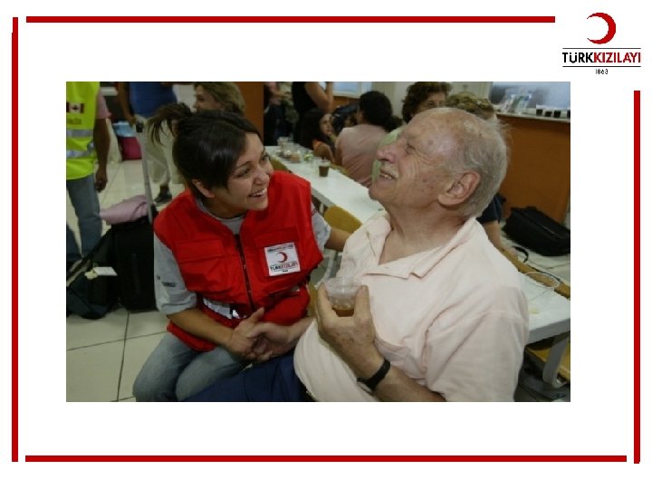 Kızılay her nerede olursa olsun insan ızdırabını önlemek ve dindirmek için gayret sarf eder. İnsanlar arasında karşılıklı hoşgörü, dostluk, işbirliği ve kalıcı barışın gelişmesine yardımcı olur.