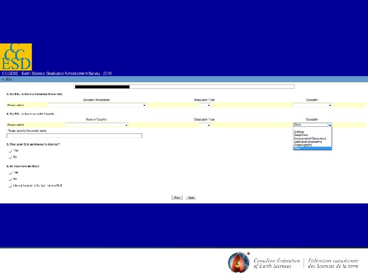 2009 -2010 Achievements • Geo. Canada 2010: – special session ‘Future of Earth Sciences in Canada’ – ‘Foundations’ Art project – Special session ‘Communicating Earth Science to the Public’ (CGEN) • CNC-IYPE – Transferred WHERE to PDAC and CSPG – Updating and modernizing Careers website – Completing FBY • Can. Geo. Ref – Hired a contractor in early 2010. Expected to launch late Fall 2011 (as scheduled).