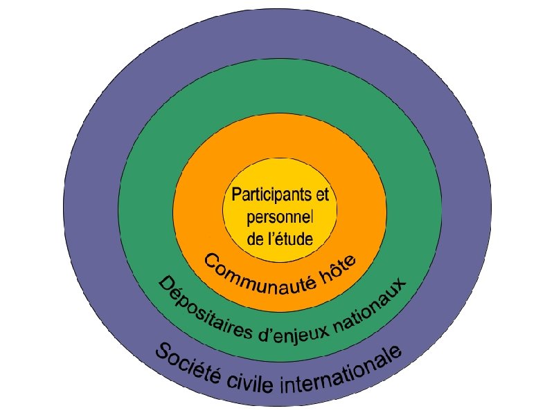 Pourquoi l’implication communautaire est -elle essentielle? § § § Principe éthique de la bienfaisance. Optimise les bienfaits et réduit les risques pour les participants et les communautés hôtes. Réduit le risque de controverse et de perturbation. Accroît la transparence et l’imputabilité des responsables de la recherche à l’égard de la communauté. Rehausse la qualité des essais, la rétention des participants, la fidélité et l’exactitude de l’autodéclaration – ce qui fait en sorte que les procédures de l’essai sont acceptables pour les participants et autres décideurs. Renforce la capacité et l’infrastructure locales.