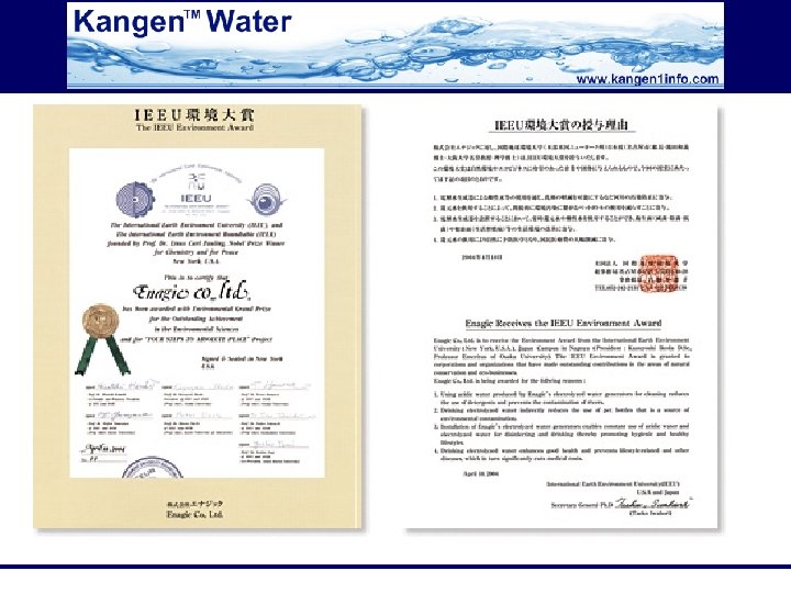 Leader in the GREEN MOVEMENT International Earth Environment University Award Winner Enagic is setting the standard for environmental responsibility Honored as an “Eco-Friendly” company Products support a Green & Responsible lifestyle
