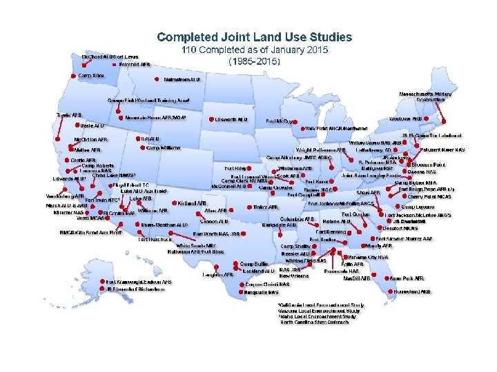 What is compatibility? • Civilian and military land uses that exist harmoniously alongside each other • Compatible uses do not expose people to undue safety risks or nuisance • Compatible uses do not result in interference with military exercises