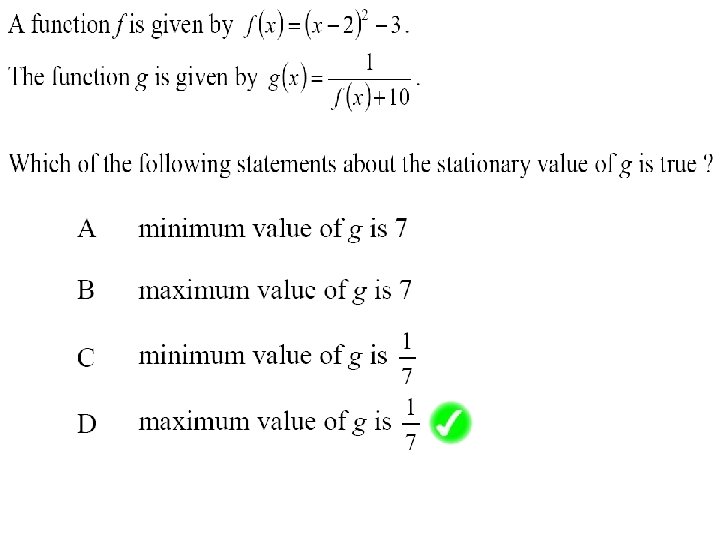 www. mathsrevision. com Higher Maths Objective Questions Units 1 Units 2 Units 3 Straight Line Polynomials Vectors Functions & Graphs Quadratics Logs & Exp Trigonometry Integration Wave Function Recurrence Relations Addition Formulae Further Calculus Differentiation The Circle Thursday, December 3, 2020 Created by Mr. Lafferty Maths Dept.