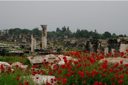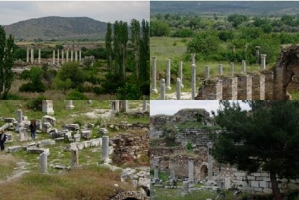 Hiérapolis, la ville antique de Pamukkale Ruines de la basilique byzantine Le théâtre Hiérapolis le temple d'Apollon nécropole La-porte de. La. Domitien
