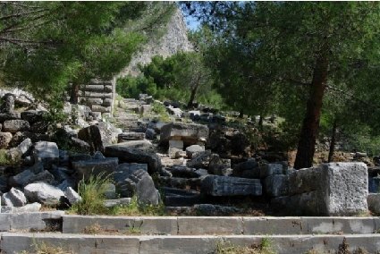 Priène À gauche : le théâtre et ses gradins, ci-dessous : le temple d’Athéna. le Bouleutérion pour les réunions du Conseil