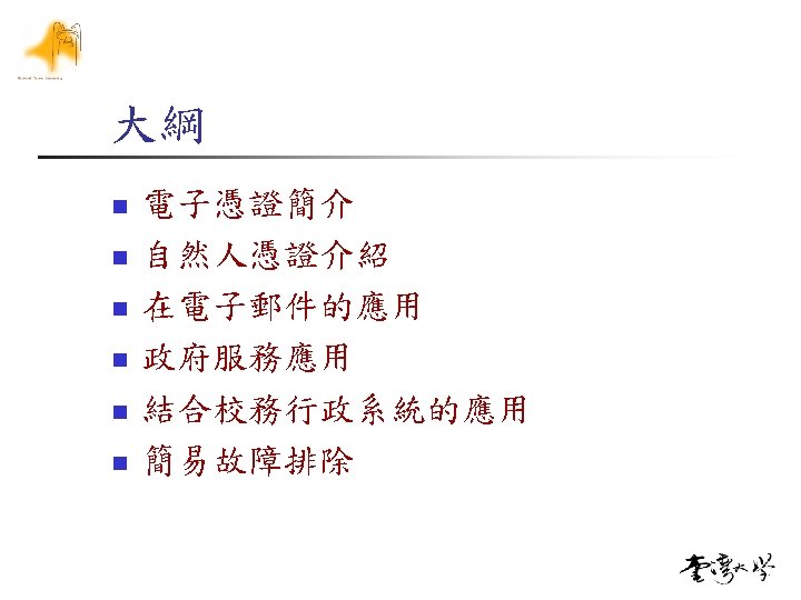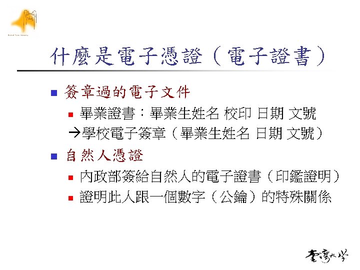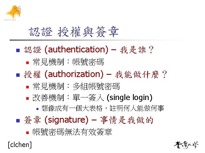 ![Reference n [clchen] n n [電子簽章法] n n n 中華電信 謝東明博士 Q&A n n Reference n [clchen] n n [電子簽章法] n n n 中華電信 謝東明博士 Q&A n n](https://slidetodoc.com/presentation_image_h/2f0b9d82b1c46a35a30ea18431ab4137/image-70.jpg)