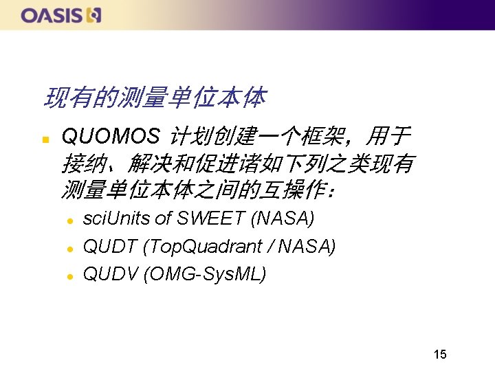 www. oasis-open. org OASIS 量与测量单位本体标准 OASIS Quantities and Units of Measure Ontology Standard (QUOMOS) 简介 v 1. 00 - Rev. D / 2010年 4月