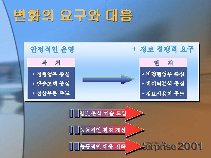 급격한 환경의 변화 “In a time of turbulence and change it is more clear than ever that knowledge is power. ” John F. Kennedy
