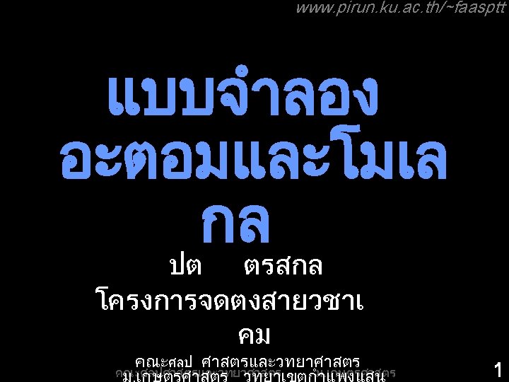 www. pirun. ku. ac. th/~faasptt Molecular Wave Function § Linear Combination of Atomic Orbitals คณะศลปศาสตรและวทยาศาสตร ม. เกษตรศาสตร 16