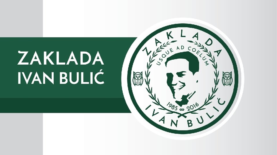 www. zakladaivanbulic. com • Zaklada je osnovana 27. lipnja 2017. godine • U čast i spomen na mladog humanistu i u svom društvenom krugu poštovanog intelektualca, Ivana Bulića, koji je uvijek težio izvrsnosti, borio se za prava slabijih, društvenu pravdu i ravnopravnost