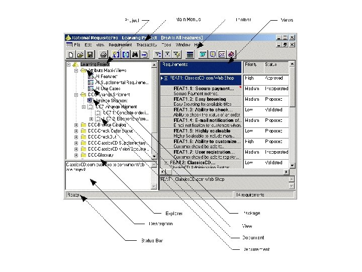 Wymagania użytkownika • CMMI: celem jest zarządzanie wymaganiami stawianymi produktom przedsięwzięcia oraz wskazywanie niezgodności między tymi wymaganiami a planami i produktami roboczymi. • Cykl życia wymagania: – – zgłoszenie przez uprawnioną osobę przegląd i sprecyzowanie, usunięcie sprzeczności włączenie do planu – zobowiązanie zarządzanie zmianą