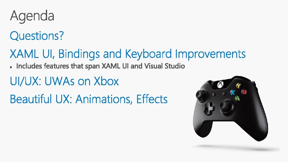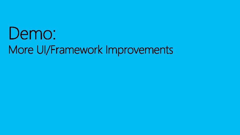 Framework layer Windows. UI. XAML Controls, layout, markup, accessibility, data binding Visual layer Windows. UI. Composition Visuals, Animations & Expressions, Effects, Input Routing & Manipulations Graphics layer Direct. X Family Text rasterization, shapes & vector rasterization, ink rendering