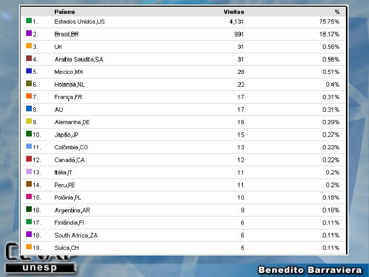 Estatística do Sci. ELO desde 02/1998 até 07/2007 Resumos visitados e baixados (downloaded) (Entre Fevereiro de 1998 e Julho 2007) The Journal of Venomous Animals and Toxins (JVAT) – 172. 047 The Journal of Venomous Animals and Toxins including Tropical Diseases (JVATi. TD) – 82. 434 www. scielo. br/jvatitd