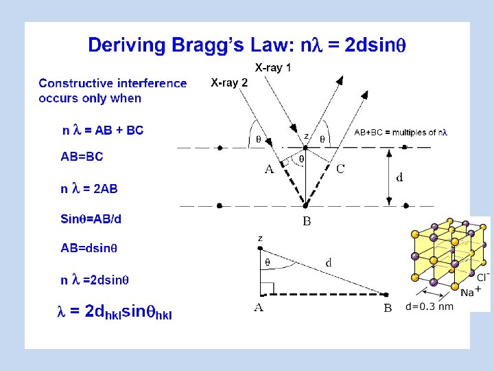 BRAGG YASASI Kristalin Atomik Katmanlarının arasındaki MESAFE Kullanılan X- Işınının DALGABOYU X Işınının GELME AÇISI