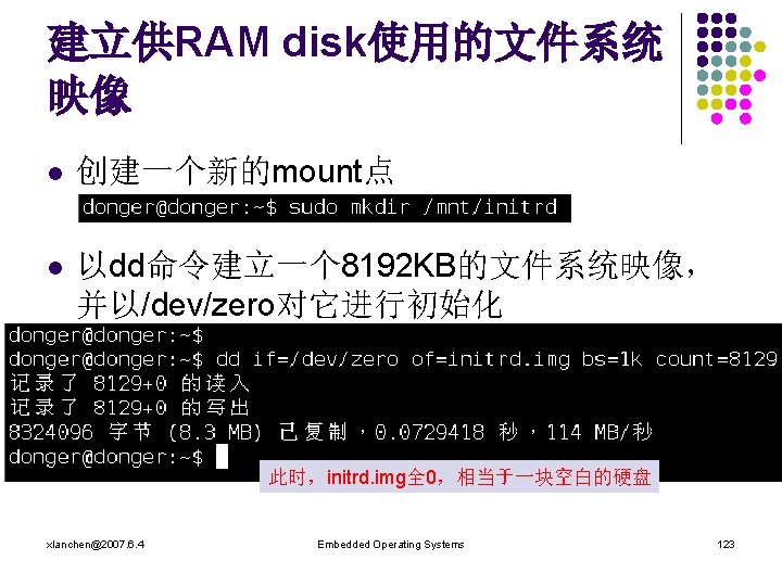相当于将initrd. img这个磁盘 进行文件系统格式化 xlanchen@2007. 6. 4 Embedded Operating Systems 125