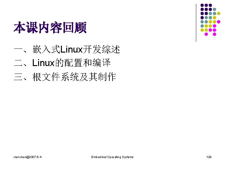 l 最后形成经压缩的RAM disk -9表示最高级的压缩算法 xlanchen@2007. 6. 4 Embedded Operating Systems 128