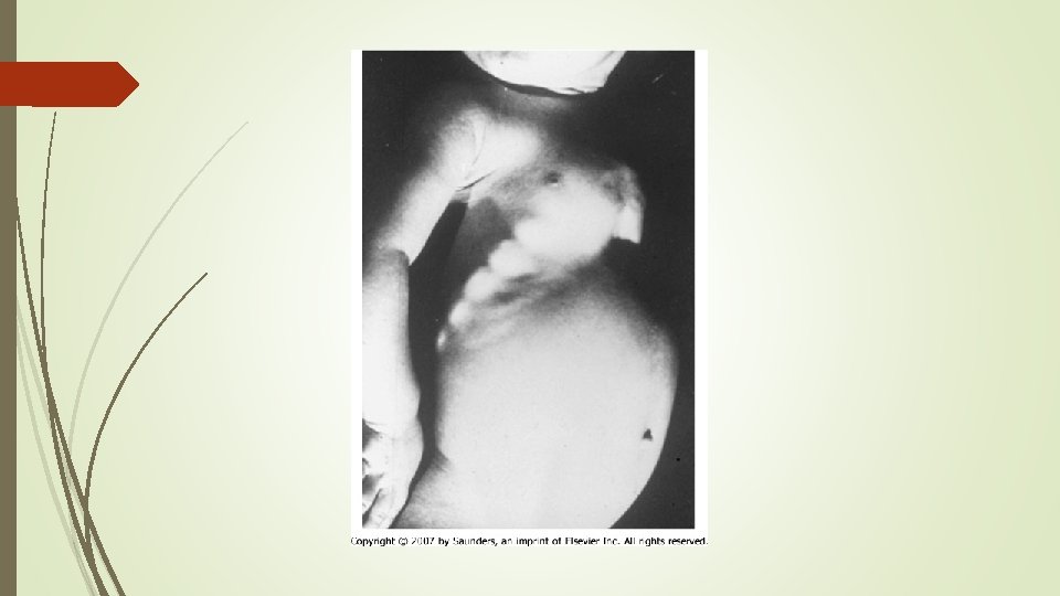 Clinical features of Rickets GENERAL Failure to thrive; Listlessness; Protuding abdomen; Muscle weakness (especially proximal); Fractures. HEAD Craniotabes; Frontal bossing; Delayed fontanelle closure; Delayed dentition; caries; Craniosynostosis CHEST Rachitic rosary; Harrison groove; Respiratory infections and atelectasis BACK Scoliosis , Kyphosis , Lordosis EXTREMITIES Enlargement of wrists and ankles; Valgus or varus deformities Windswept deformity (combination of valgus deformity of 1 leg with varus deformity of the other leg); Anterior bowing of the tibia and femur; Coxa vara; Leg pain. HYPOCALCEMIC SYMPTOMS Tetany ; Seizures; Stridor due to laryngeal spasm
