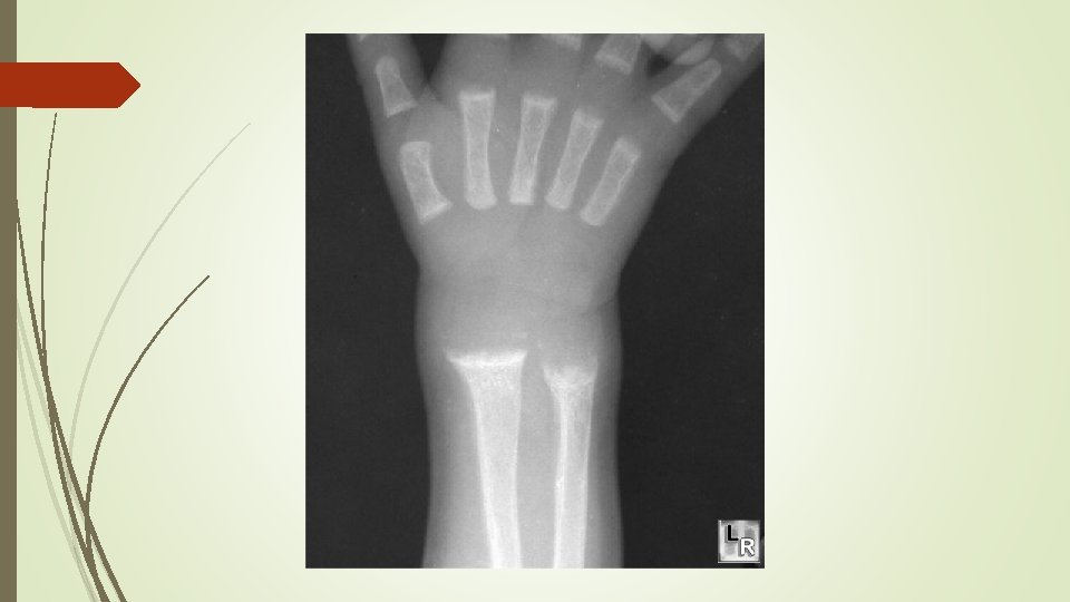 Radiographic findings Ø cupping Ø widening of the epiphyseal plate Ø fraying of the metaphysis
