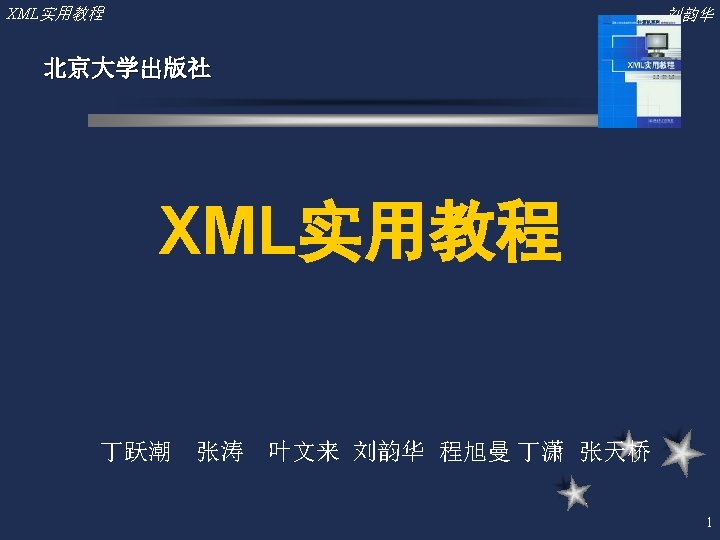 XML实用教程 刘韵华 5 Java程序中XML文件的转换 l 引入套件 import javax. xml. transform. *; import javax. xml. transform. stream. *; import java. io. *; 建立Transformer. Factory对象和以XSLT Script作为输入建立Transformer对象 l 输入XML文件创建Stream. Source对象 l 输出Stream. Result创建与输出文档HTML文 件的关联 l 调用Transformer对象的transform方法生 成HTML文件 l 29