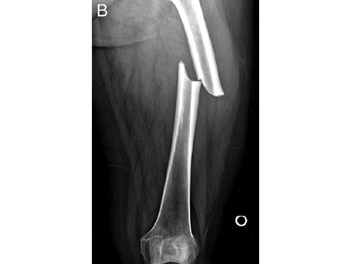 OPEN VS CLOSED �Must describe to a consultant if fracture is open or closed �Closed fracture ◦ Simple fracture ◦ No open wounds of skin near fracture �Open fracture ◦ Compound fracture ◦ Cutaneous (open wounds) of skin near fracture site. Bone may protrude from skin ◦ Open fractures are open complete displaced and/or comminuted