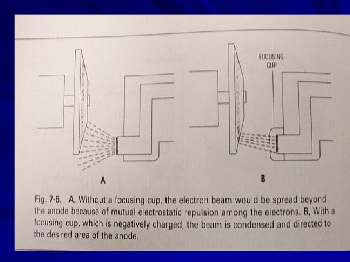 The Cathode The cathode is the negative side of the tube and contains two primary parts: The filaments The focusing cup