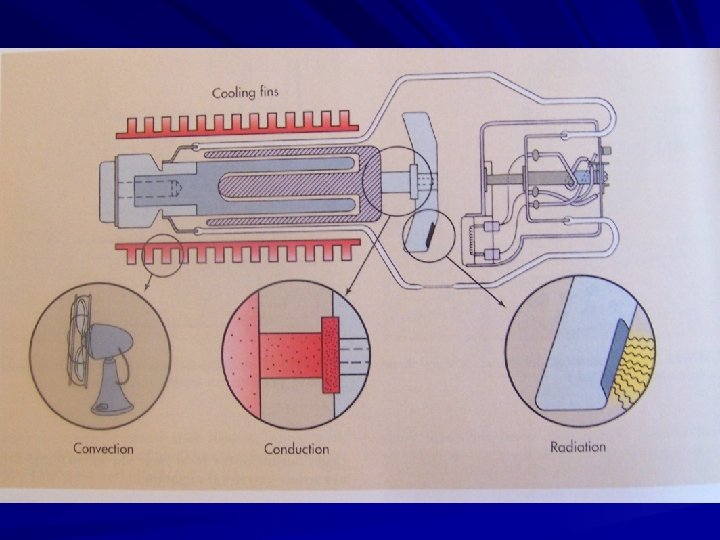 Tube cooling The x-ray tube uses all three forms of cooling. – – – Radiation Conduction Convection