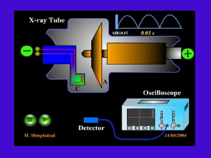 Production of Diagnostic X-Rays � 99% of electron energy is transformed into heat and light when electrons collides with the target. � 1% of electron energy is transformed into X-Rays. � 0. 5% remaining of electron energy after inherent filtration. � 0. 1% remaining of electron energy after added filtration (available X-rays for Imaging).
