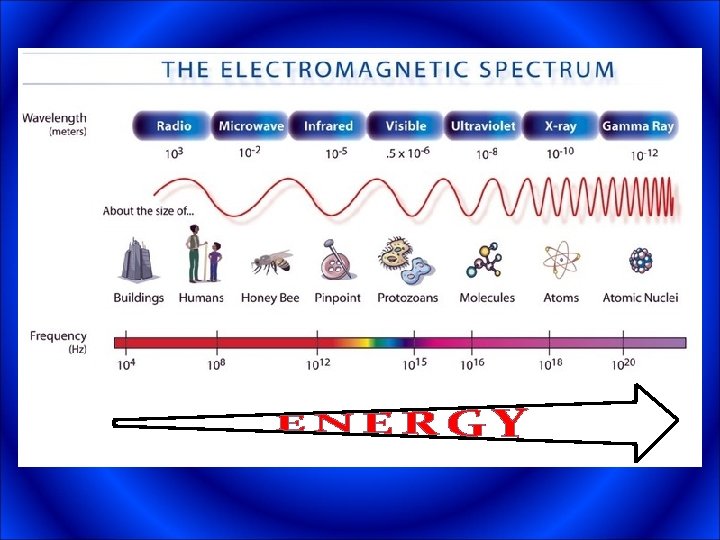 PHOTONS -The energy of a light-wave is carried by packets called photons -The energy of a photon depends on the light’s wavelength -Smaller wavelengths have larger energies