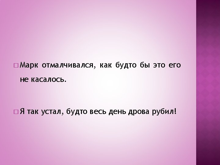 � La modale comparativa russa può essere implicita (come quella italiana) se il soggetto è lo stesso di quello della principale. In questo caso la congiunzione КАК non può essere usata, ma soltanto СЛОВНО, ТОЧНО, БУДТО. Sono usate anche le locuzioni КАК БУДТО, КАК БЫ.