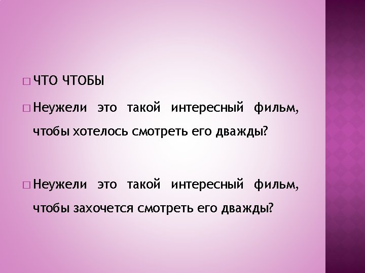 � Sono introdotte dalla congiunzione ЧТОБЫ, anziché ЧТО: � Le modali con significato consecutivo che dipendono da una frase negativa o nella quale ci sia l’avverbio НЕДОСТАТОЧНО.