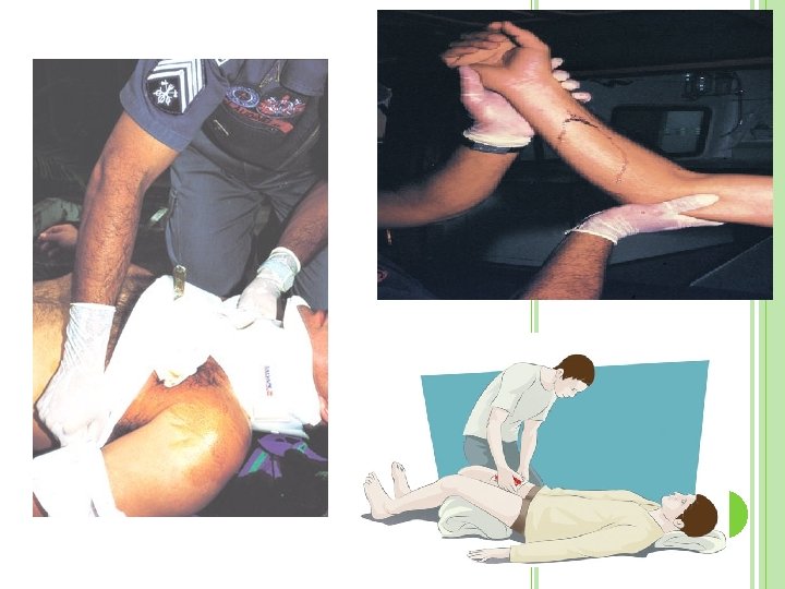Hemorragia ATENÇÃO! O método mais indicado para conter uma hemorragia é utilizando a pressão direta, usando um curativo simples: gases, compressas, panos ou toalhas. O importante é lembrar que o material utilizado não deve ser removido caso esteja encharcado! Se possível manter elevação da parte atingida de modo que fique num nível superior ao do coração. Atenção: Não elevar o segmento ferido se isto produzir dor ou se houver suspeita de lesão interna tal como fratura.