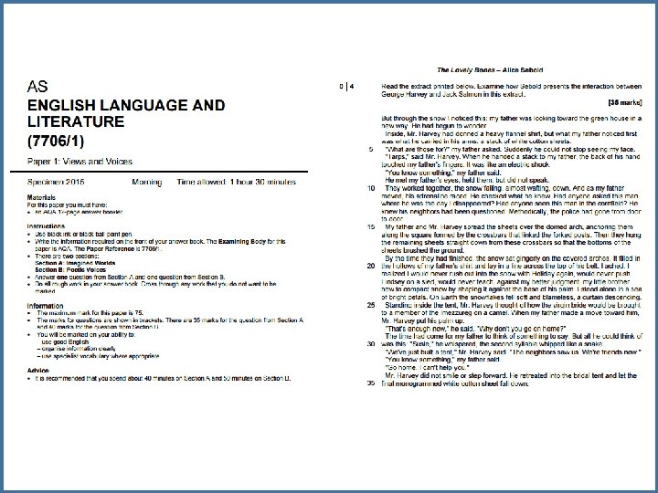 Y 12 English Language and Literature Date: Monday and Tuesday 9 th May 2017 Teacher: Mr Cole-Savidge Room: 117 L. O. : to assimilate key aspects of research throughout the unit and to prioritise areas of revision in preparation for your exam Exam 1 – (AM) Friday 19 th May - (7706/1) – Views and Voices (Imagined Worlds, Poetic Voices) Exam 2 – (PM) Wednesday 24 th May – (7706/2) – People and Places (Remembered Places, Re-creative Writing)