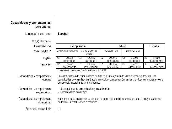 Recuerda que un buen curriculum debe ser: • Espaciado y con amplios márgenes • Remarca los titulares y aspectos más importantes o interesantes • Cuida todos los detalles (abreviaturas, fechas, etc. )
