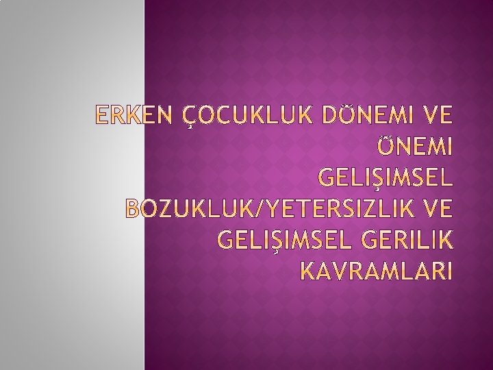 EÇÖZE: AMAÇ Erken çocuklukta özel eğitim iki temel amaca hizmet eder; 1) Erken Tanılama: Özel eğitime gereksinimi olan çocukları ve ailelerini eğitsel tanılama, ( (2) Eğitim/Destek Sunma: Tanılanan duruma göre gereksinimler göz önüne alınarak çocuğa ve ailesine erken özel eğitim ve diğer destekleri sunma.