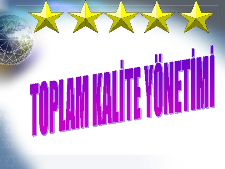 TOPLAM KALİTE Ürünlerin, hizmetlerin, çalışanların, süreçlerin ve çevrenin kalitesini sürekli geliştirerek bir örgütün rekabetçiliğini maksimum kılmaya çalışan yaklaşım.