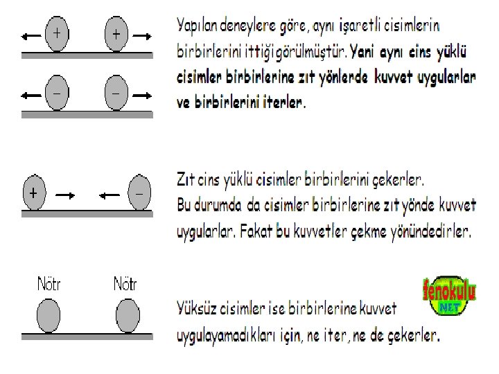 Nötr (Yüksüz) Cisim Bir cismin üzerindeki pozitif (+) yük sayısı, negatif yük sayısına eşit ise, böyle cisme nötr ya da yüksüz cisim denir. Yüksüz denildiği zaman cismin içinde hiç yük yok anlamına gelmez. Yalnızca (+) ve (–) yük miktarının eşit olduğu anlamına gelir.