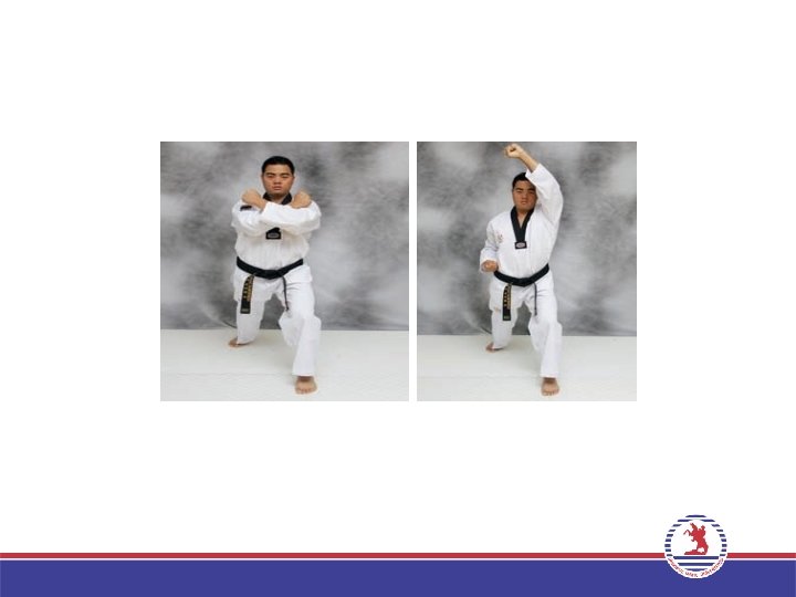 X Block: • Draw both hands back into position at the side of the body, then shoot arms forward at the same time to cross at the wrists. The blocking surface is the area between the wrists where the forearms cross. Illustrations (A, B) show a high X block, and illustrations (C, D) show a low X block. The low X block is a defense against attacks to the lower body, in particular the groin, while the high X block is a defense against downward attacks to the head and shoulders and attacks to the face.