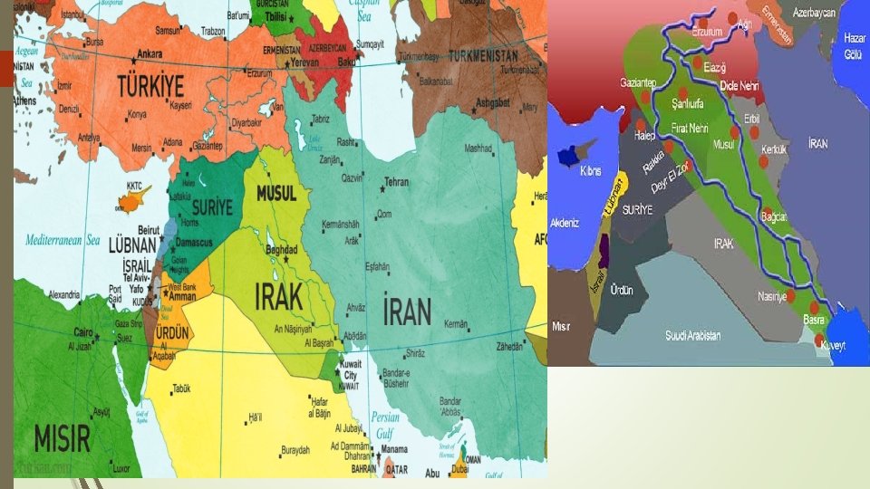 Aşağıda verilen yerleri gösteren bir «Ortadoğu» haritası çizelim Türkiye Lübnan Filistin Irak Süriye Ürdün İran Mısır İsrail Suudi Arabistan Kızıldeniz basra körfezi fırat nehri dicle nehri