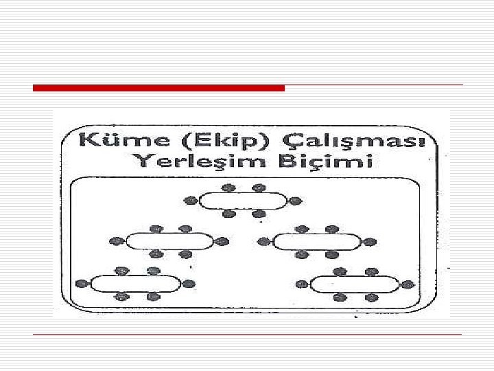 Çoklu Gruplu Yerleşim Biçimi o Öğretim öğretmen merkezli değildir. o Aktivite, labaratuar çalışmalarına uygun, işbirliği temelli öğrenmenin pekiştirilmesine uygun bir düzendir.