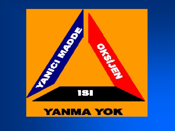 SÖNDÜRME PRENSİPLERİ Soğutarak söndürme a. Su ile Soğutarak Söndürme: Soğutarak söndürme prensipleri içerisinde en çok kullanılandır. Suyun fiziksel-kimyasal özelliği, yanıcı maddeyi boğar ve yanıcı maddeden ısı alarak yangının sönmesini sağlar. b. Yanıcı Maddeyi Dağıtma : Yanan maddelerin dağıtılmasıyla yangın nedeni olan yüksek ısı bölünür, bölünen ısı düşer ve yangın yavaş söner. Akaryakıt yangınlarında bu tip söndürme uygulanmaz. a. Kuvvetli Üfleme : Yanan madde üzerine kuvvetli olarak üflenen hava alevin sönmesine ve yanan maddenin ısısının belirli oranda azalmasına neden olacaktır. Havayı kesme a. Örtme : Katı maddeler veya kimyasal bileşikler kullanarak yanan madde ile oksijenin kesilmesi olayıdır. Akaryakıt yangınlarında, örtü olan kimyasal bileşikler kullanılmaktadır. b. Boğma : Yangının oksijenle ilgisinin kesilmesi veya azaltılması olayıdır. Yanıcı maddelerin ortadan kaldırılması Yanmakta olan maddelerin ortadan kaldırılması halinde, yanma üçgeni oluşamaz. Bu nedenle yangın sönmüş olur.