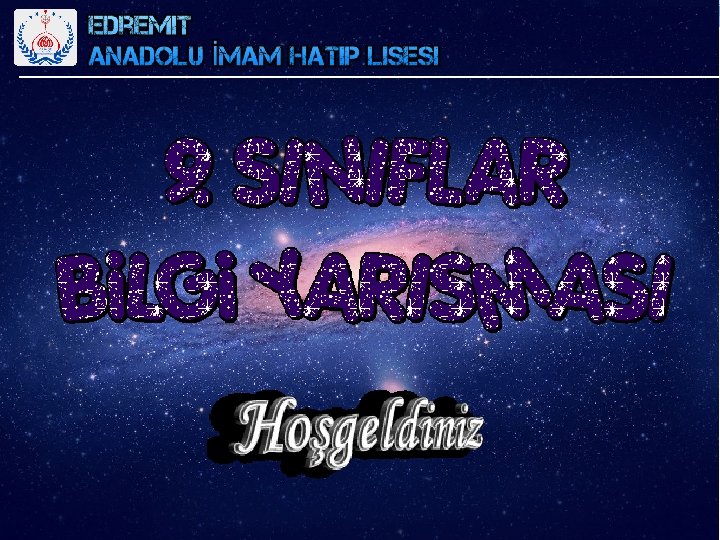 YARIŞMANIN KURALLARI q Yarışma soruları Arapça, Kuranı kerim, Dini ilimler ( fıkıh, tefsir, hadis ) Matematik, Fen (Fizik, Kimya Biyoloji) Sosyal Bilimler (Tarih, Coğrafya) Genel Kültür ve dikkati ölçmeye yönelik sorular olacak q Yarışmalarda 15 sorulacak beraberlik durumunda yedek sorulara geçilecek. q Her sorunun değeri 10 puan olacak. q Soruların cevaplanma süresi 1 dakika olacak. q Yarışma süresince izleyicilere 6 sorulacak, cevapları izleyiciler verecek.