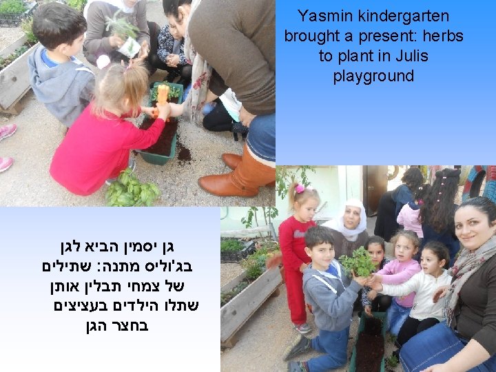 גן יסמין מעכו מבקר בגן של סמירה בג'וליס “Yasmin “ kindergarten visits Samira’s kindergarten in the Druze village Julis יד ביד יוצרים קשר Hand in hand we build a connection Pps edit by Efrat Srebro