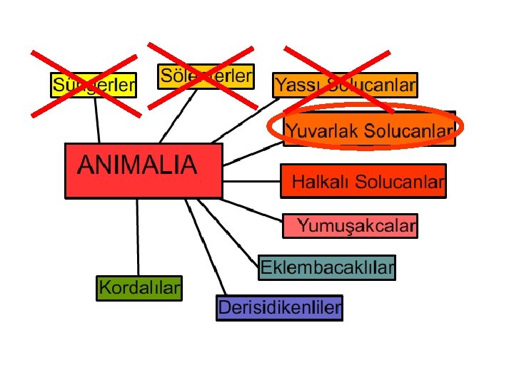 YUVARLAK SOLUCANLAR Solunum ve Boşaltım vücut yüzeyinde difüzyon ile gerçekleşir. • Basit bir merkezi sinir sistemleri vardır. • Uzunlamasına kaslara sahiptirler. Sağa sola kıvrılarak hareket ederler. •