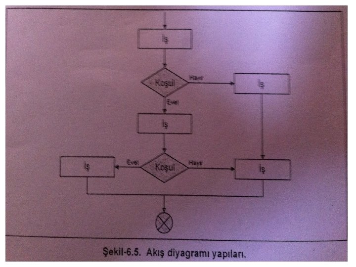 AKIŞ DİYAGRAMLARI En eski ve en yaygın program tasarım yöntemlerinden biri akış diyagramları (flow chart) kullanmaktadır. Günümüzde bir program çok sayıda yordamdan veya modülden oluştuğundan, çok sayıda akış diyagramı kullanmak gerekebilir. Uzun veya karmaşık yordamlarda iç içe diyagramlar kullanmak da mümkündür. Hazırlanan diyagramlar arası geçişin sağlanması ve tutarlılığın korunması bir miktar zorluk getirir.