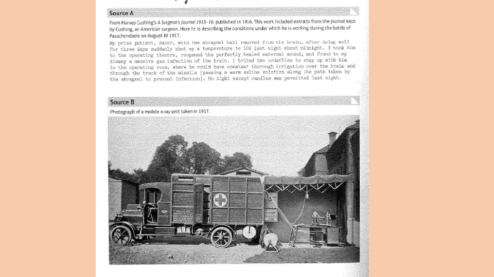 Medicine 4 The Western Front: injuries treatments and trenches 1) Describe two features of blood transfusions (4 marks) • 2 a) How useful are sources A and B (page 178) for an enquiry into the treatments that were available for wounded soldiers on the Western Front? (8 marks) • • 2 b) Study Source A. How could you follow up Source A to find out more about the treatments that were available for wounded soldiers on the Western Front? (4 marks)