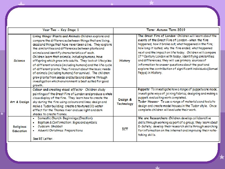Educational Visits Term Topic Venue Subject Date Aut 1 Living things Gibside Science TBC Aut 2 Great Fire of London School History 5 th Nov Spr 1 China Oriental Museum Geography 28 th Jan Spr 2 Changing Materials Glass Centre Science / 22 nd Apr Art Sum 1 Florence Nightingale Sum 2 Infant Trip Beamish Museum History TBC Other events related to Literacy, Numeracy, Science, Music, Dance, Sport & PTA